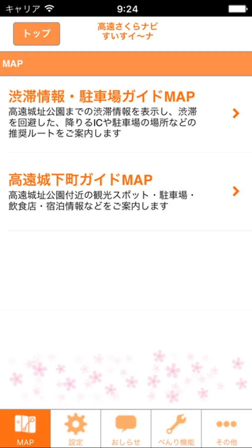 さくら祭り期間内は、高遠城址公園までの渋滞情報や推奨ルートをご案内します。