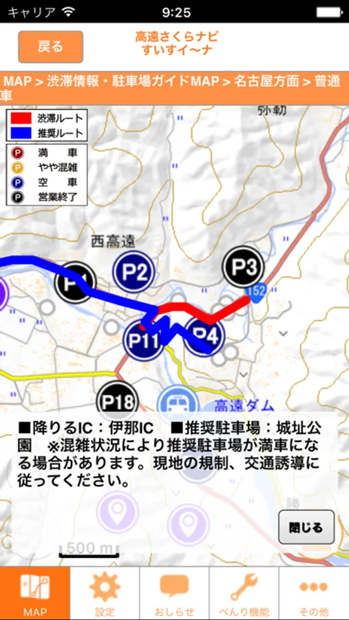 ※渋滞情報や駐車場の空き情報は、調査のタイミング等から、実際の情報と異なる場合があります。