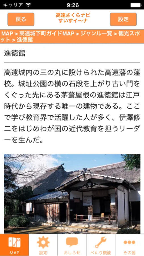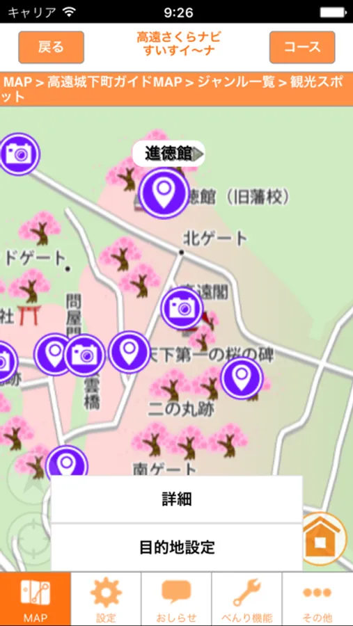 高遠さくらナビ すいすイ~ナはGPSで取得したエリア内の位置情報やスポット情報・イベント情報を提供するアプリケーションです。
