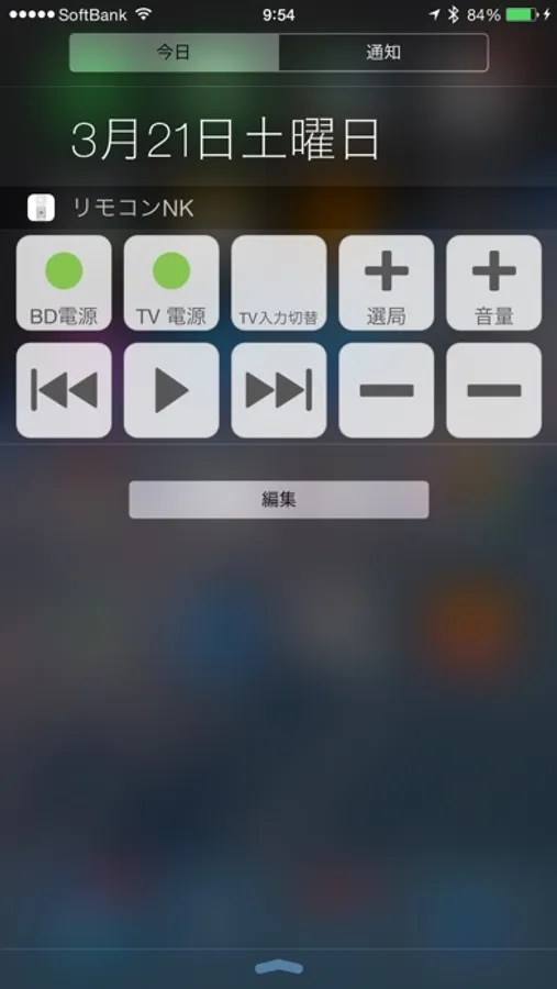 設定画面の「通知センターへのボタン配置」から通知センターに配置するボタンを設定すると、通知センターで操作できる様になります。