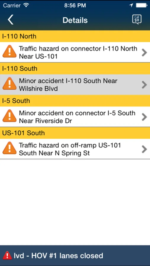 · Call 511: Quick access to Call 511 system for traffic, transit, motorist aid, commuter services and FasTrak information