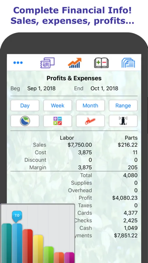 Profits provides a complete financial system that tracks all sales, purchases and expenses. Includes ALL formatted PDF Reports that can be printed.