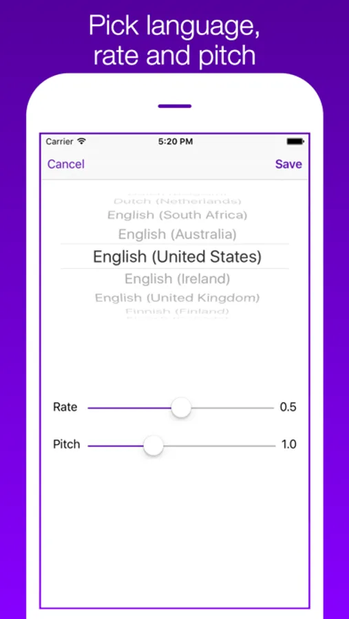 Spesynto leverages the iOS built-in speech synthesis, and so no internet connection is required!
