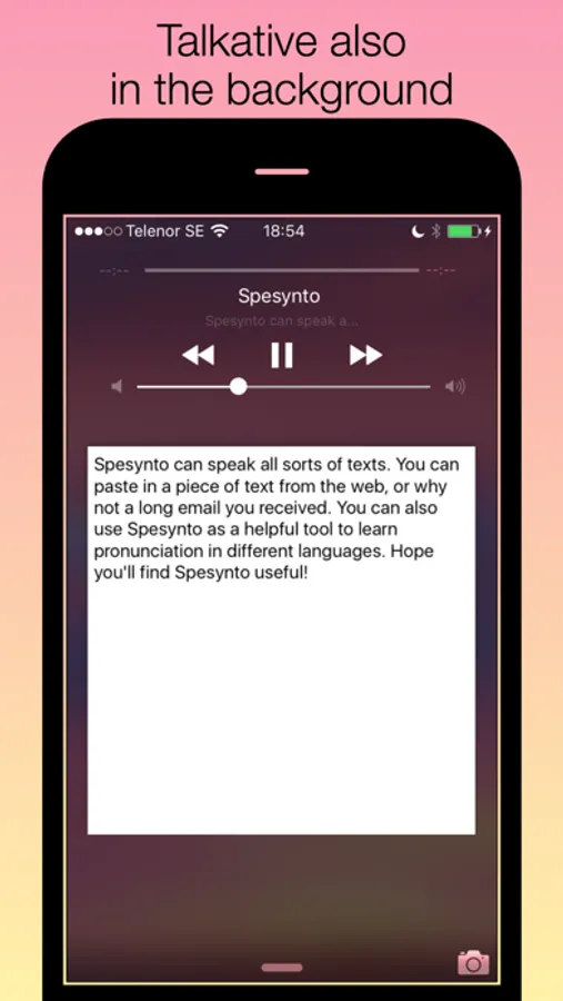 Spesynto speaks loud and clear also in the background and in silent mode. And of course you can use the iOS media controls to play and pause.