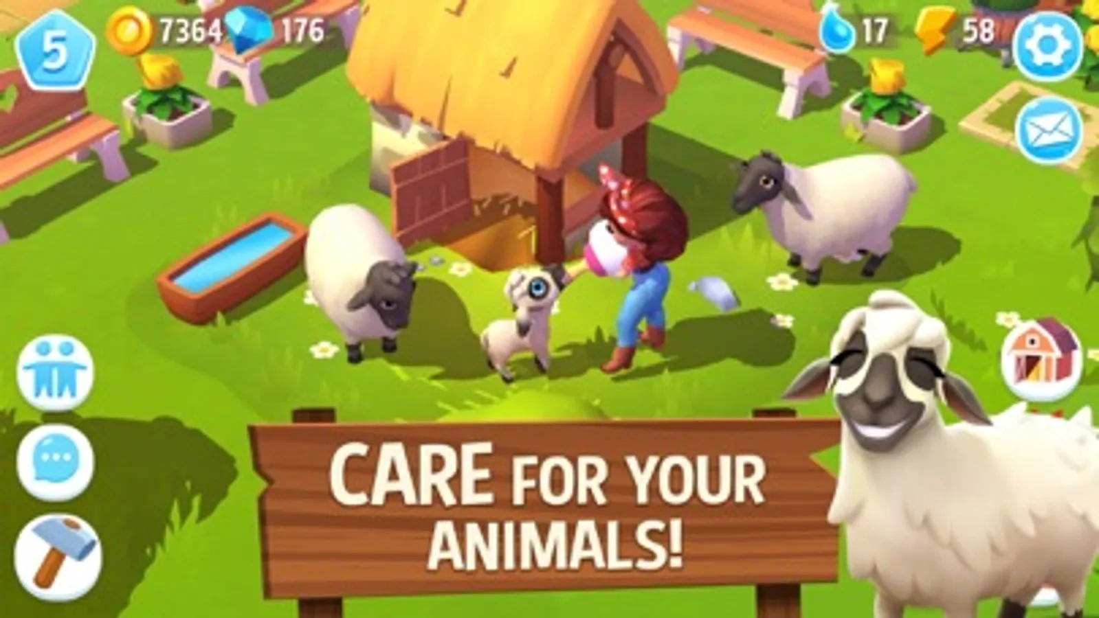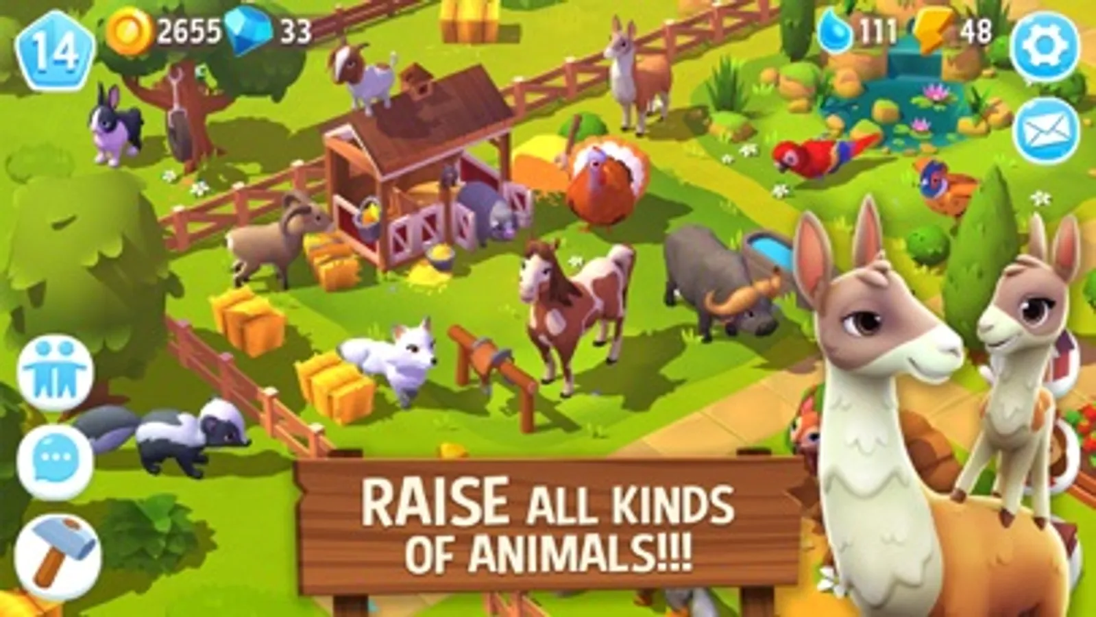 • Raise baby animals and discover new breeds, like a Steinbacher Goose, Emu, Tudanca Cow, Blue Peacock, American Guinea Hog, Bourbon Turkey, or a Scarlet Macaw! In this farming game for free, each new breed produces rare farm goods to help your farm grow.