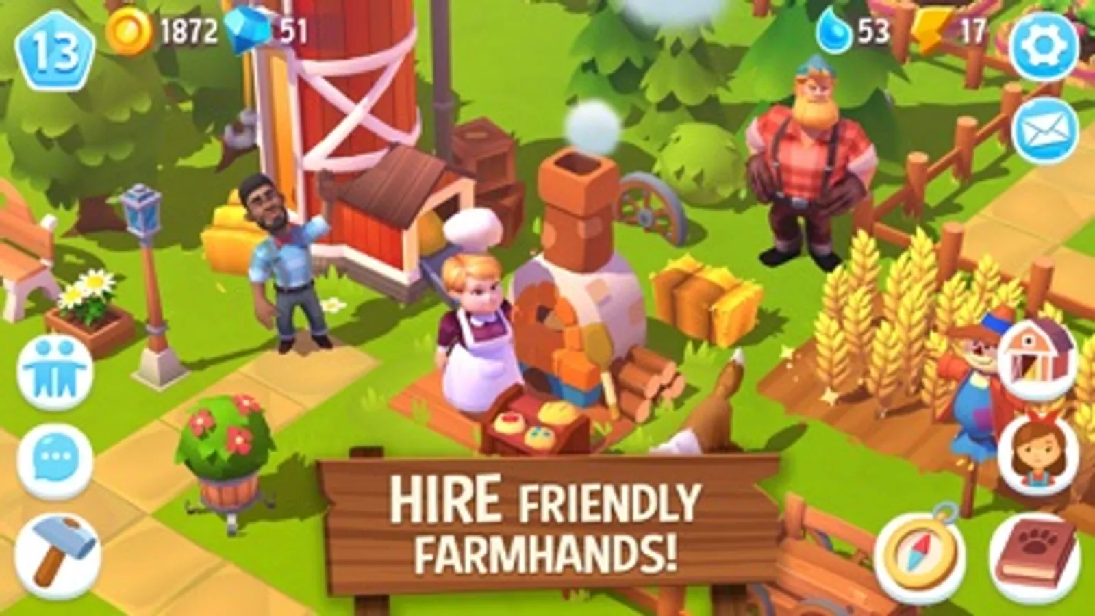 • Build a team of specialized Farmhands to help your town ship progress in this animal simulator game, ranging from heavy-duty lumberjacks to talented cooks to help your farmer. Level them up to become experts in caring for FarmVille 3 animals, and unlock new skills and recipes and improve their animal game abilities.
