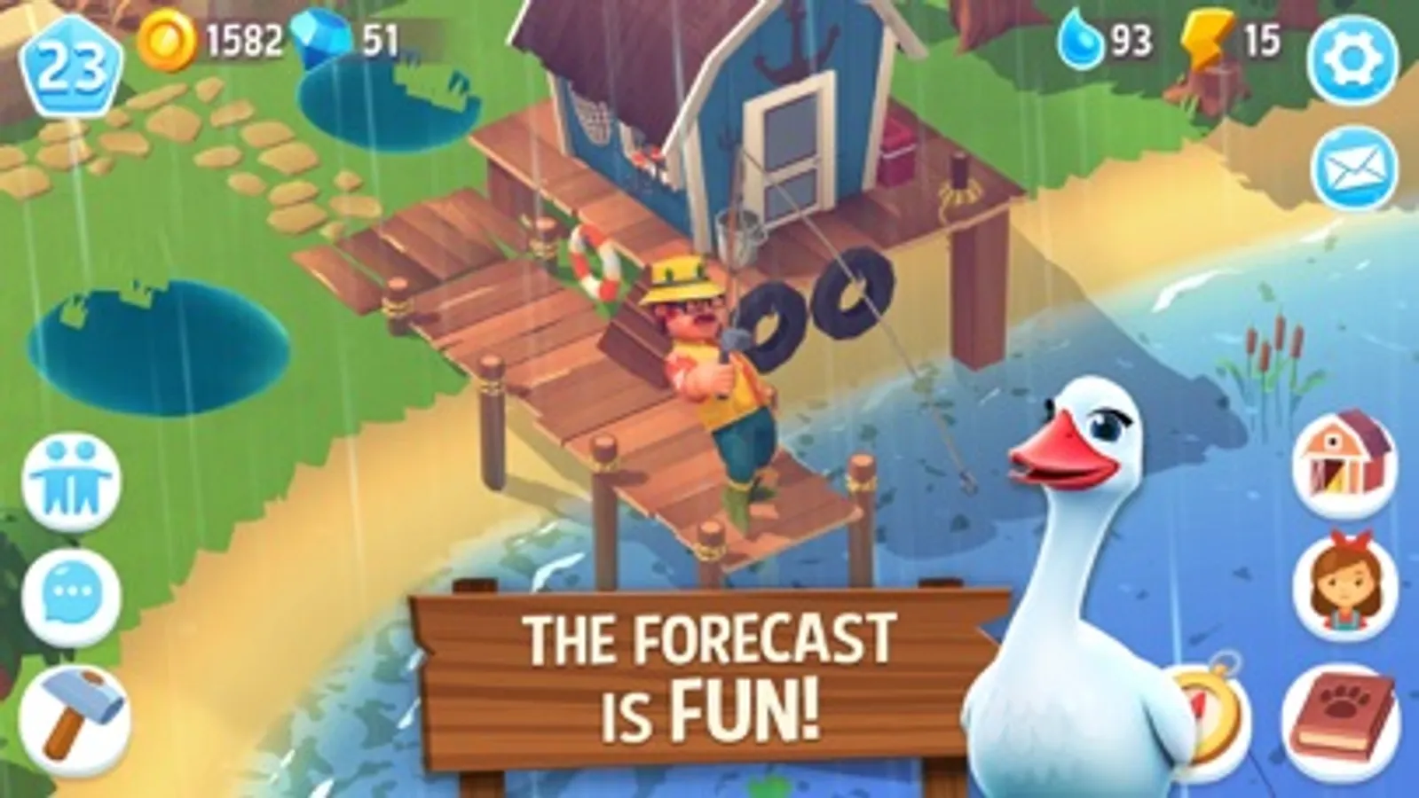 • In this farming game, use the weather to improve your farm village. Check the forecast for perfect farming weather and plan for a healthy harvest of hay and more.