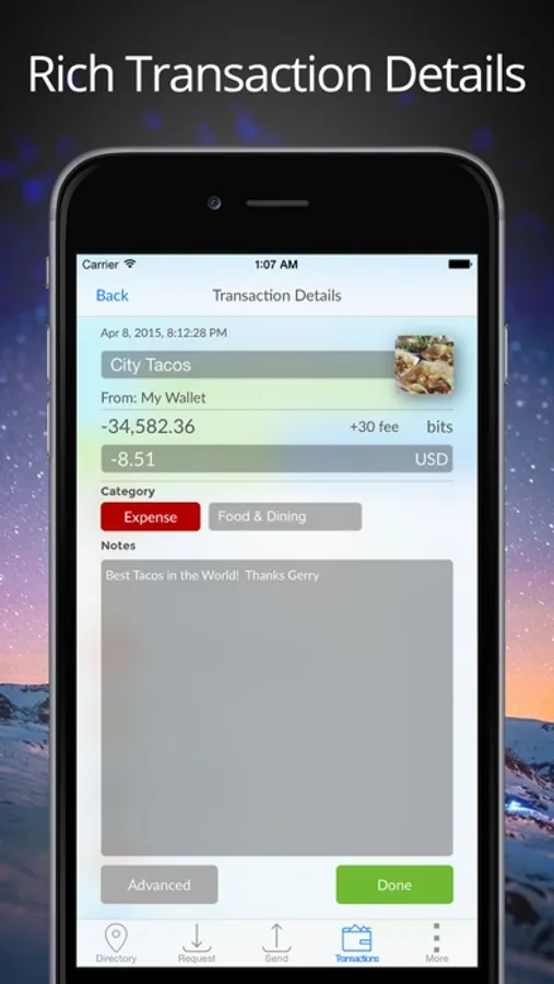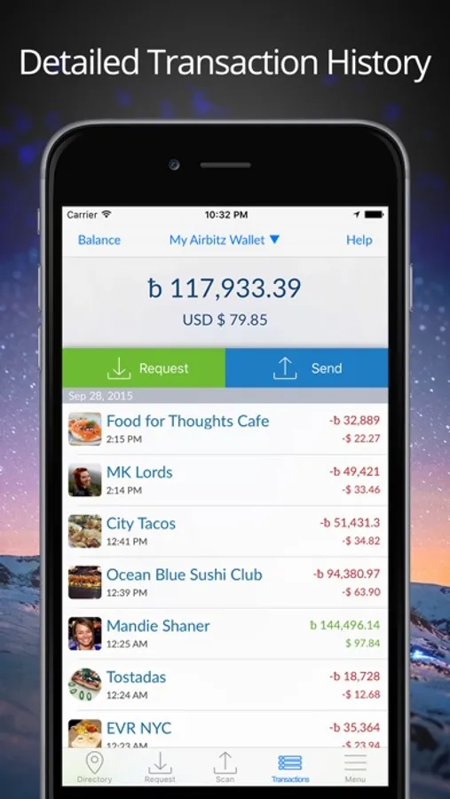 • Integration with the Airbitz Business directory to auto-complete business information for transactions including business logo/photo