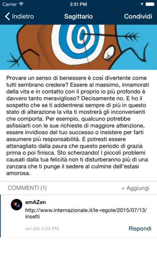 Finalmente puoi leggere l'oroscopo di Rob Brezsny direttamente sull'iPhone e condividerlo con i tuoi amici usando Facebook e Twitter.