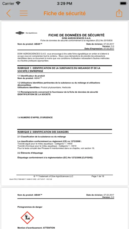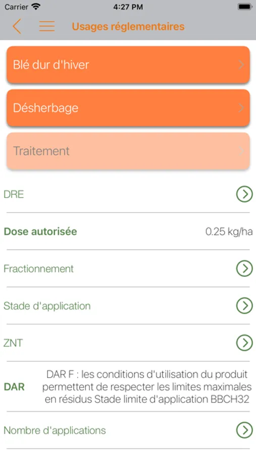 Ces données sont récupérées par recherche textuelle ou multicritères (recherches de produits autorisés par culture, par cible, par AMM, par mention danger, etc.) ou par lecture de codes-barres EAN 13, QR, Datamatrix et code UFI.