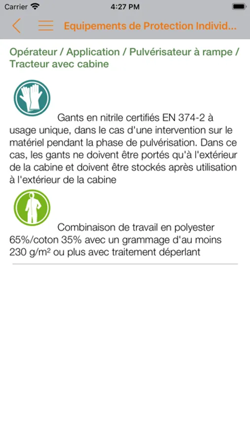 L’application permet de visualiser les Fiche de Données de Sécurité (FDS) lorsqu'elles sont disponibles, de consulter les informations réglementaires de tous les usages de vos produits phytosanitaires, d’exporter les informations d’une liste de produits scannés via un datamatrix, et pour la France, de vérifier la validité des mélanges de produits sur une culture choisie, d’accéder aux informations d’équipement de protection individuelle ainsi qu’aux informations de rangement dans le local phyto, de visualiser la notice technique du fabricant, d’accéder aux conseils de votre distributeur.