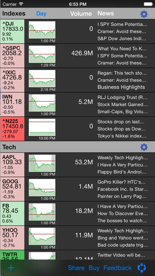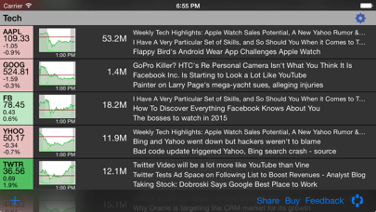 A tiled mode provides as many as 176 simultaneous gorgeously detailed quotes on an iPad. Quickly pinch-zoom to a list mode to see intra-day stock trends and news.