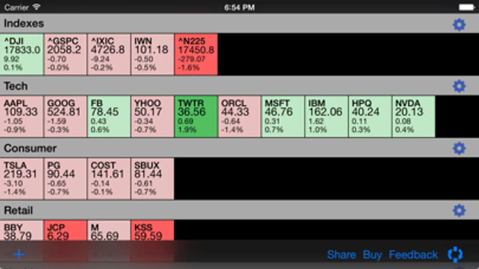 * Easily organize stocks by Tap-and-Drag gestures into customizable sections