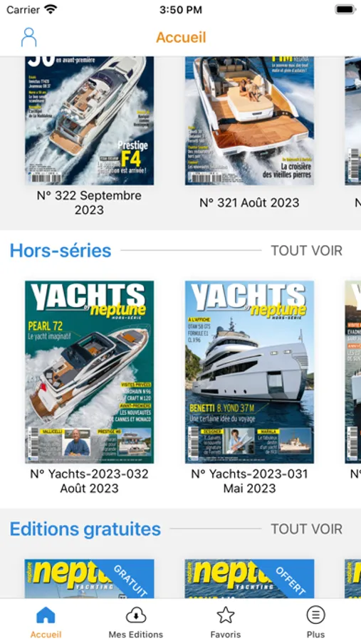 Téléchargez gratuitement l’application du magazine Neptune Yachting Moteur qui vous permettra d'acheter les versions numériques, enrichies de vidéos, de photos et de textes. Retrouvez également les anciens numéros ainsi que les hors-séries thématiques.