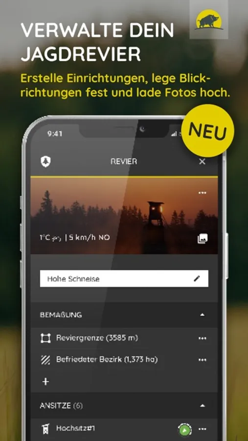 Ab sofort kannst Du außerdem Deine Reviergrenzen- und einrichtungen auf den Revierkarten anlegen, verwalten und teilen. Unsere intelligente Ansitzplanung hilft Dir zudem bei der Auswahl der besten Ansitzeinrichtung.