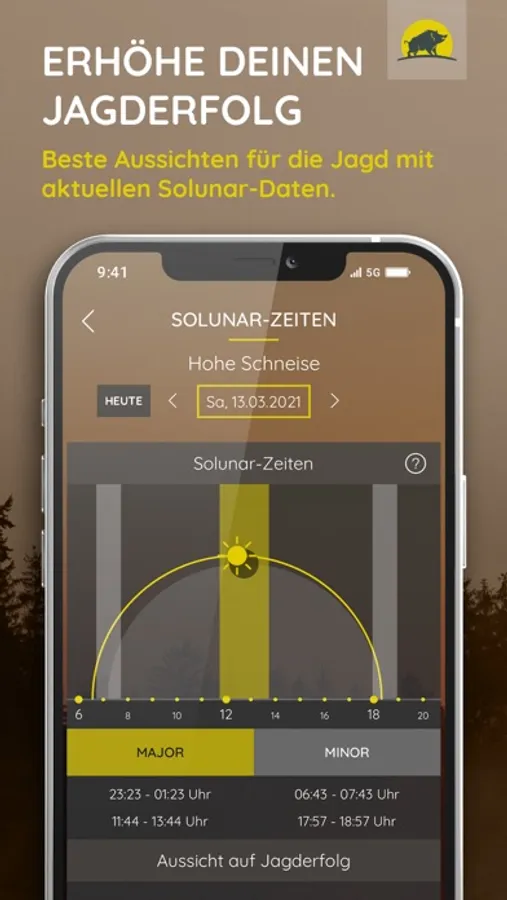 - ein übersichtliches Jagd-Dashboard: Unsere Jagd- und Wetteruhr bietet Dir alle wichtigen Jagd-Daten auf einen Blick.