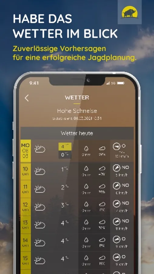 Als zuverlässiger Jagdbegleiter im Hosentaschenformat liefert Dir Jagdwetter täglich alle wichtigen Daten für Deine Jagdplanung.