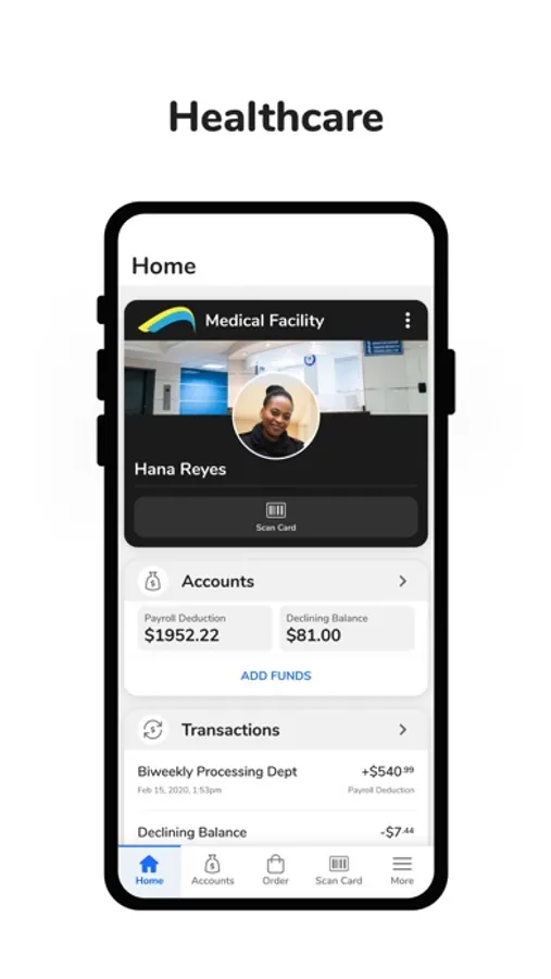 For healthcare: Add your badge to your mobile phone. Download GET to opt into payroll deduction, manage funds, view and make purchases, report a lost or stolen ID card, and place online food orders.