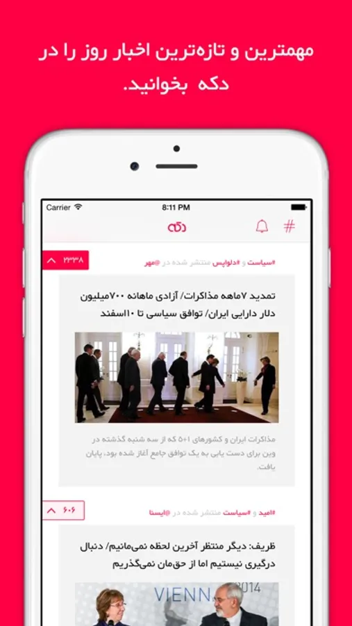 In Dakke, we are trying to provide you with the latest and the most important news for all the Persian languages speakers around the world. You will find news from all kinds of issues including politics, economics, entertainment, sports, international, science and technology. The beautiful and clean design of Dakke brings you the best reading experience.