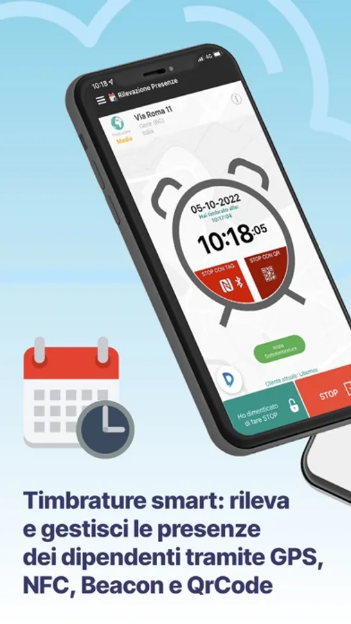 With remote stamping you can also print by approaching your smartphone to NFC stickers or Bluetooh Beacons.