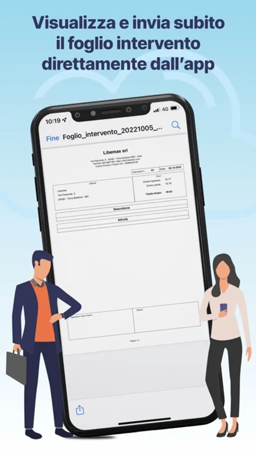 After stamping, you can view the intervention sheet to be sent to the customer by mail, whatsapp, ... or just print.