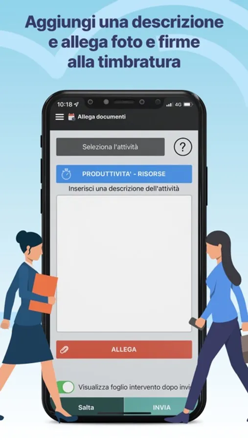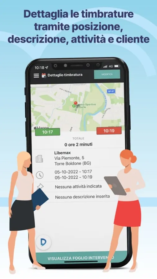 By entering the input stamp, the app sends the time and position to your administration panel.