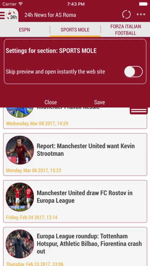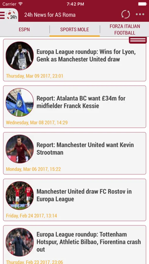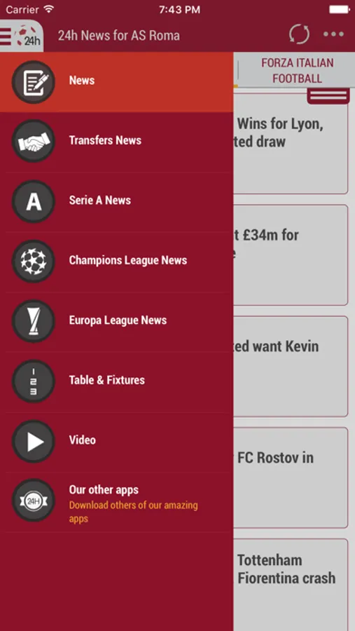 The only 24 hours! The first 24 hours! All the others came later! The best! AS Roma 24h combines the major newspapers and news portals in one place!