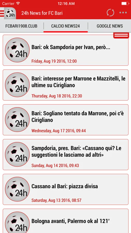 L'unica 24h! La prima 24h! Tutte le altre sono venute dopo! La migliore! FC Bari 24h combina le notizie dei principali giornali e portali web in un'unica applicazione!