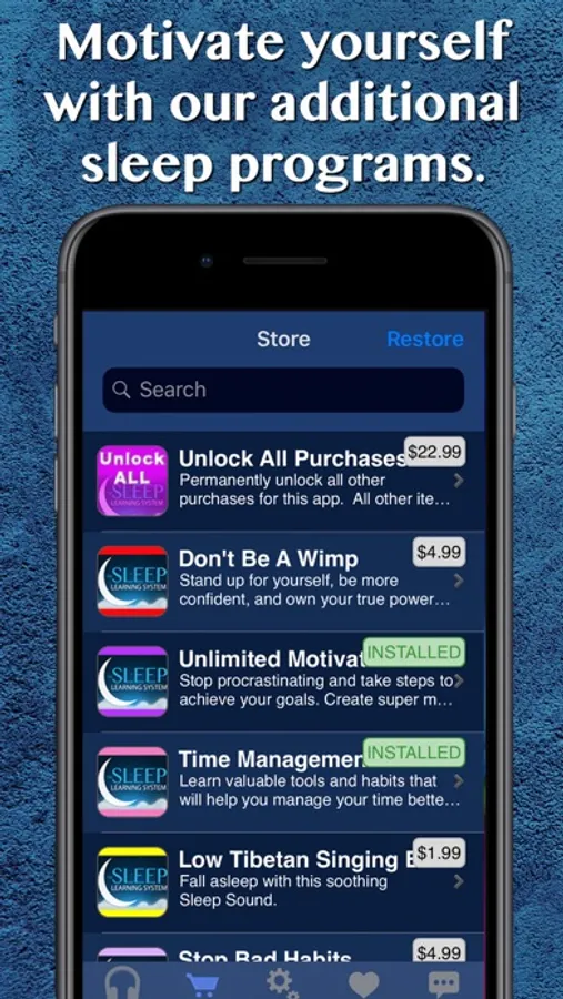 Download this Business Success app for FREE. Then browse your in-app store for other great Sleep Learning programs, or use the UNLOCK ALL in-app for over 60% savings on your ENTIRE in-app store list.