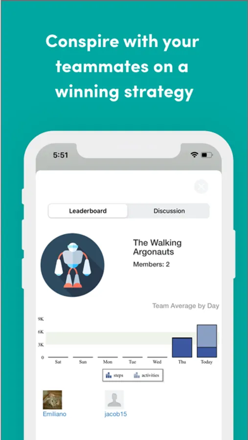 Check your competitions & teams, join step challenges, give points to friends, convert activities to steps, and participate in discussions.