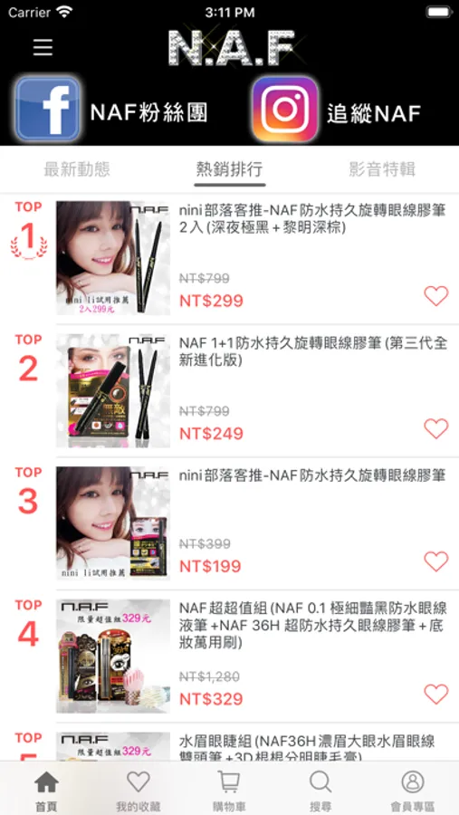讓您隨時隨地都能一手掌握N.A.F商品訊息