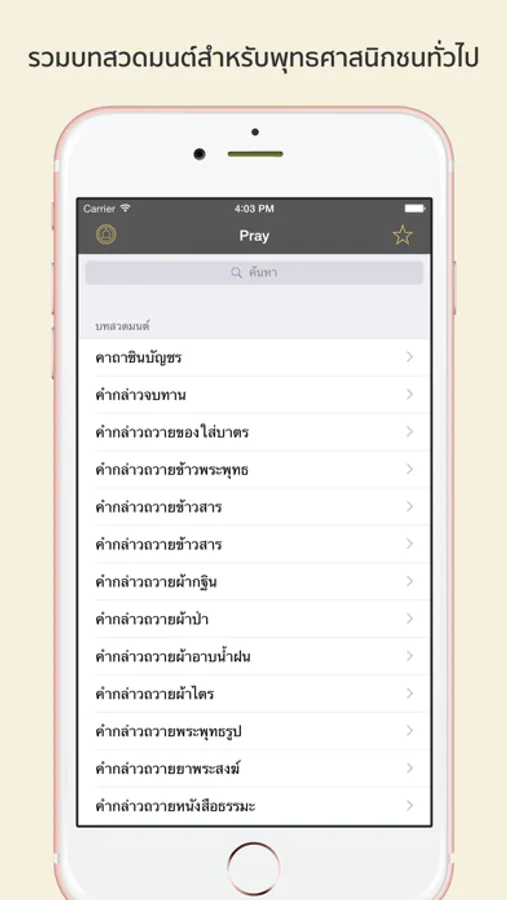 ○ เพิ่มบทสวดมนต์ที่ต้องการสวดไว้ในรายการโปรด (Add Favorite)
