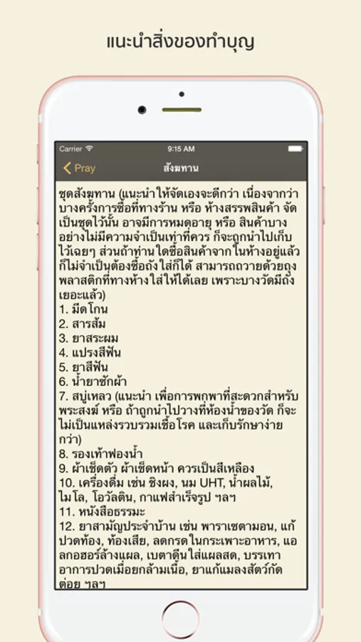 บทสวดมนต์จะเลื่อนอัตโนมัติ สามารถหยุดโดยแตะที่หน้าจอ 1 ครั้ง และแตะอีกครั้งเพื่อให้เลื่อนต่อ