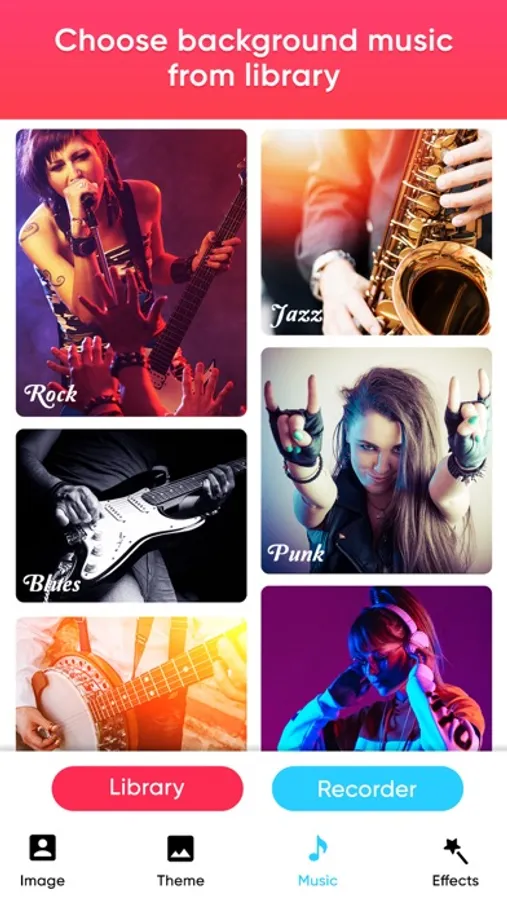 4. Select music from music library or from our app