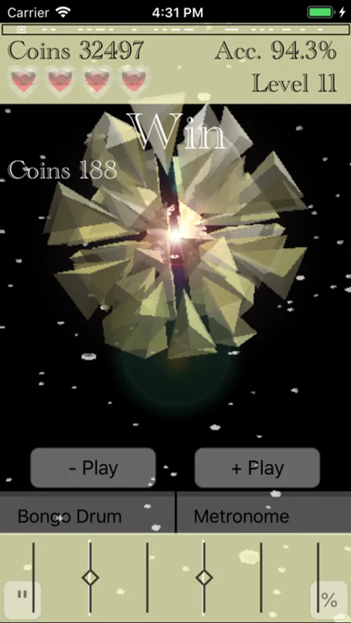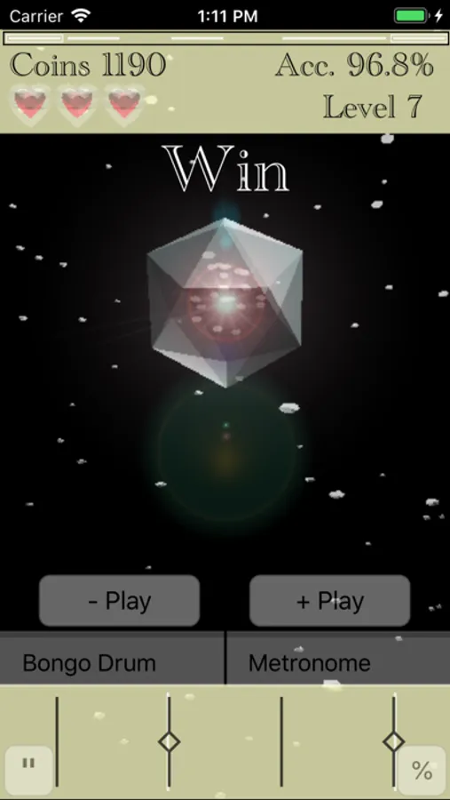 xBeat is a playful 3d rhythm game that challenges your tap-timing and listening skills. Simon Says for rhythm, you first listen and then try to repeat the rhythm you just heard. As levels progress you are challenged with faster and faster tempos and more and more notes.