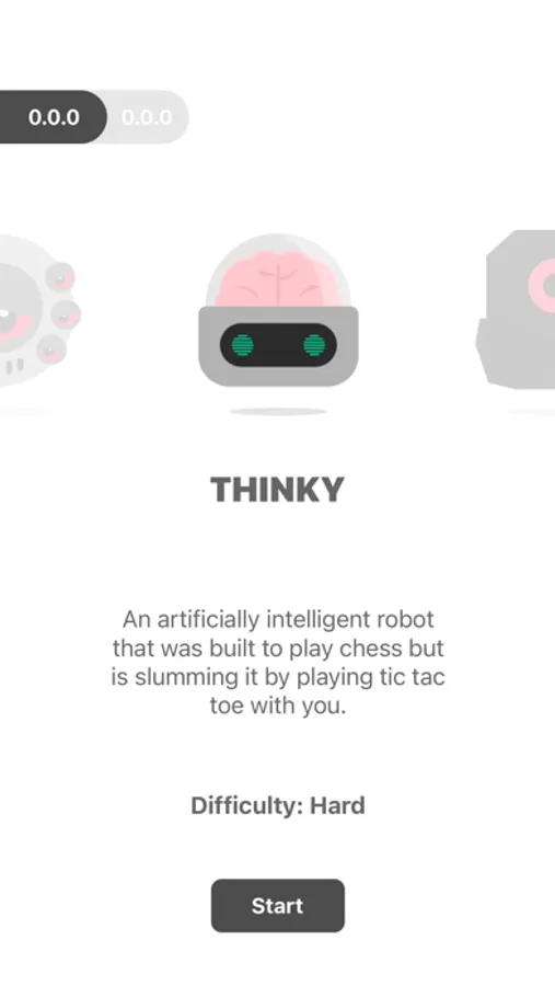 Play tic tac toe with bots. Choose a bot to play against and enjoy their interactions. 6 difficulty levels and personalities of bots.