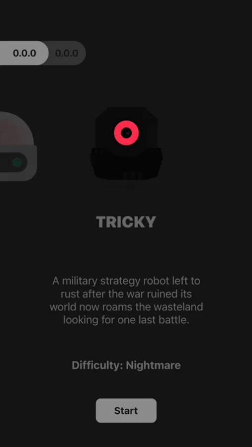 - Tricky : A military strategy robot left to rust after the war ruined its world now roams the wasteland looking for one last battle.