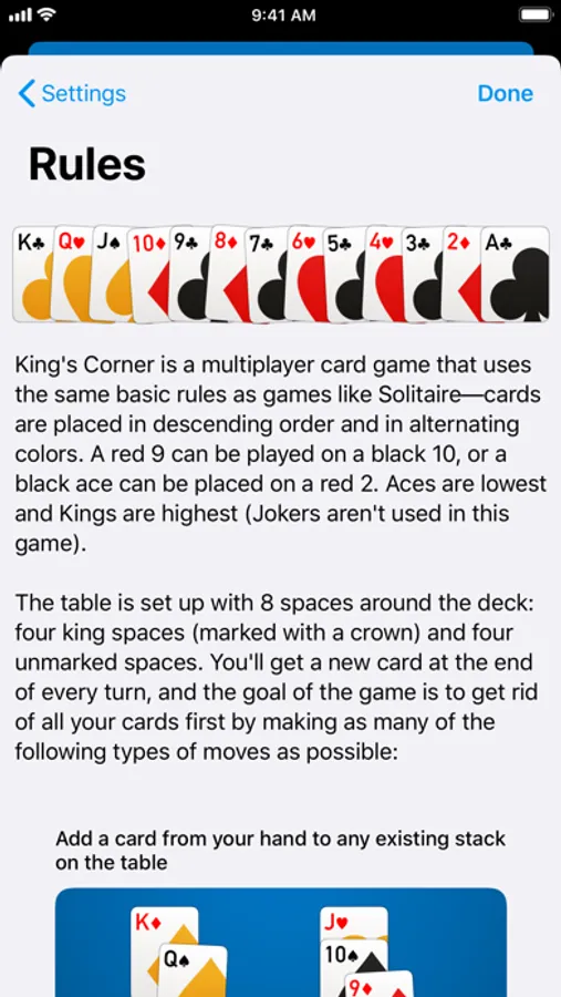 Move over Solitaire, there's a new king of card games! King’s Corner, or Kings in the Corner, is a great game for all ages—easy to pick up and endlessly entertaining. And now, refreshed for iOS 13 with support for Dark Mode and more, King’s Corner 2.5 is better than ever.