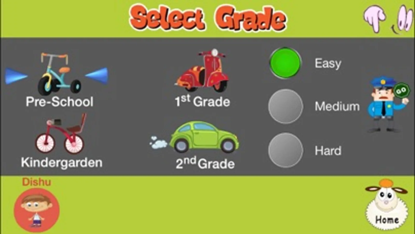 - 4 grade levels from preschool to 2nd grade, each with 3 levels of difficulties