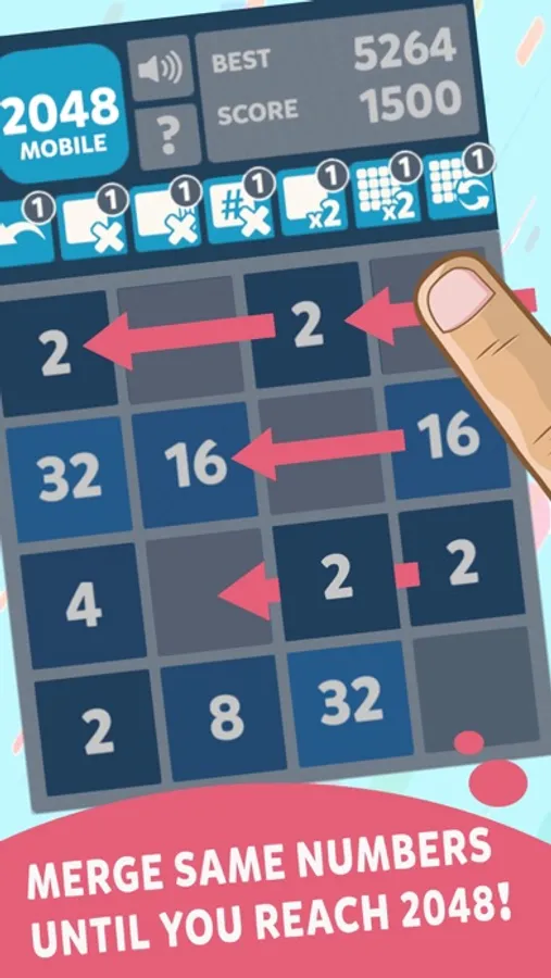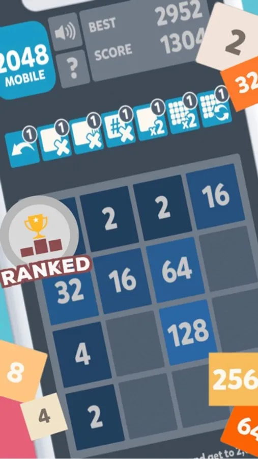 2048 Mobile is based on 2048, created by Gabriele Cirulli, which was based on 1024 by Veewo Studio and conceptually similar to Threes by Asher Vollmer.