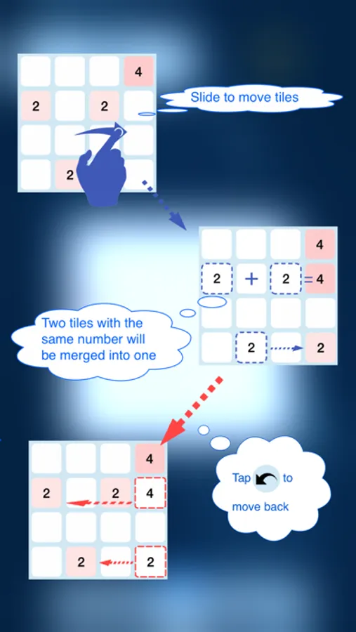 Slide the tiles and the same numbers will be merged into one. What is the greatest number that you can get? 1024, 2048 or 4096? Try it along with the wonderful sound effects.