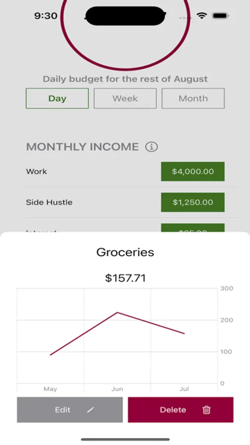Daily Budget automatically clears your transactions for the previous month. Simply set your budget, add additional expenses and incomes, and always know how much you can spend TODAY to reach your financial goals for each month.