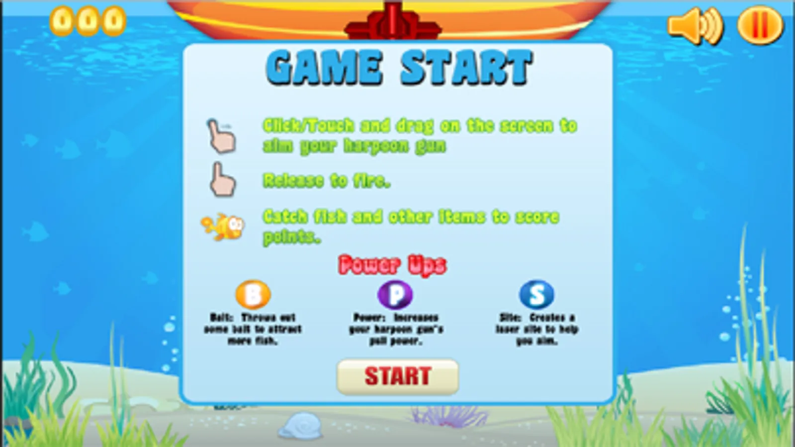 Use your state of the art suction cup harpoon gun to reel in as many fish as you can in 2 minutes. 3 different power ups will aid your in your quest for the highest score in Reeled In. Controls are easy to understand, simply touch and drag to aim your harpoon gun and release to fire. Heavy fish are worth more points, but take longer to reel in. Stay on the lookout for the shark, there is a warning sound before he shows up and is worth big points, if you can catch him. If you can't, he will devour all fish his path.