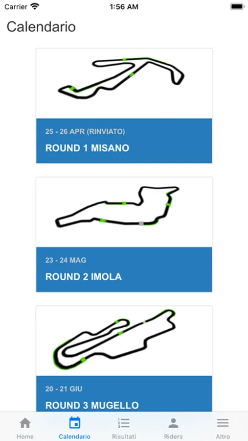 *Calendario: l'elenco di tutte le gare e i circuiti in cui si svolgono.