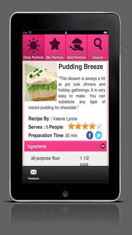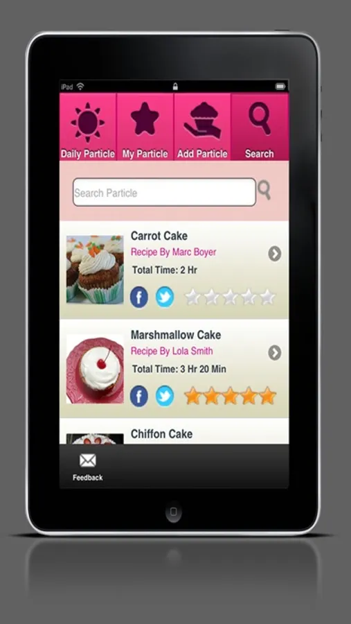 Concept of Sweet Particle was conceived by a high school girl who found it hard to locate all sweet recipes consolidated at one place. Her new born taste to make cakes motivated her to design and build this simple and easy to use app.