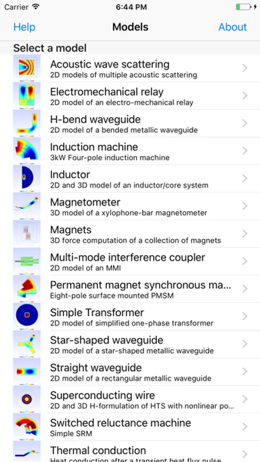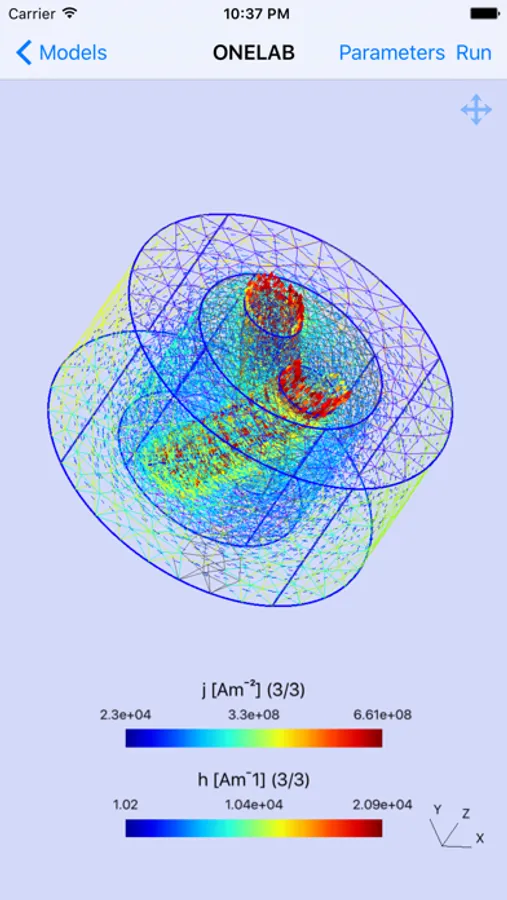 ONELAB comes packaged with a selection of ready-to-use examples. New models can be added simply by opening the corresponding zip archive (in Safari, iCloud, Dropbox, etc.).