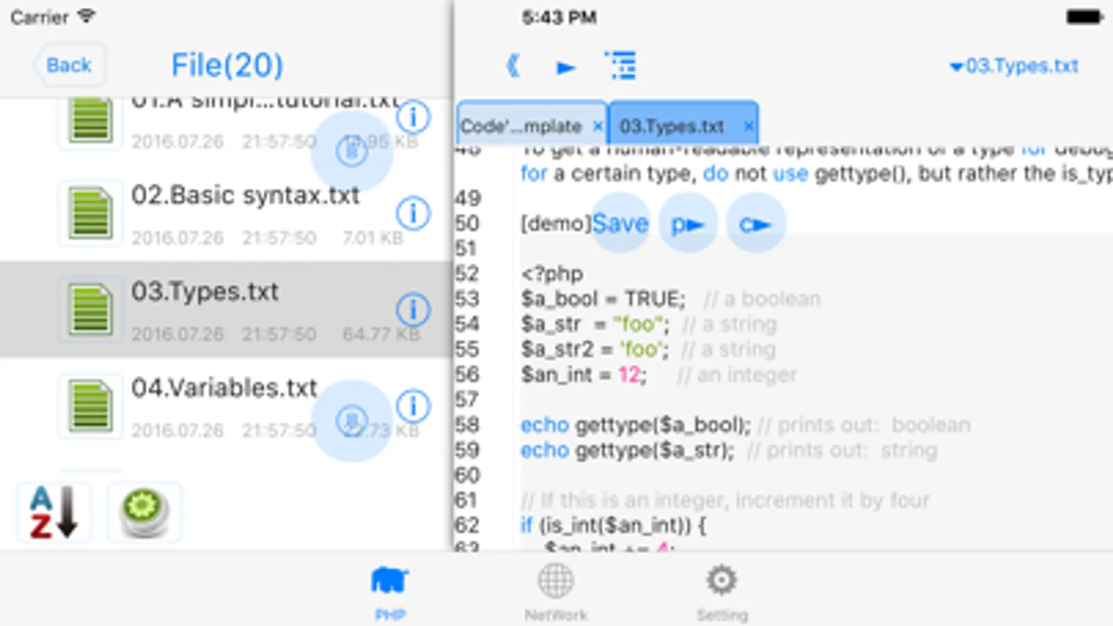 *You can save php code and learning materials, and can be modified to the save file and delete the save file .