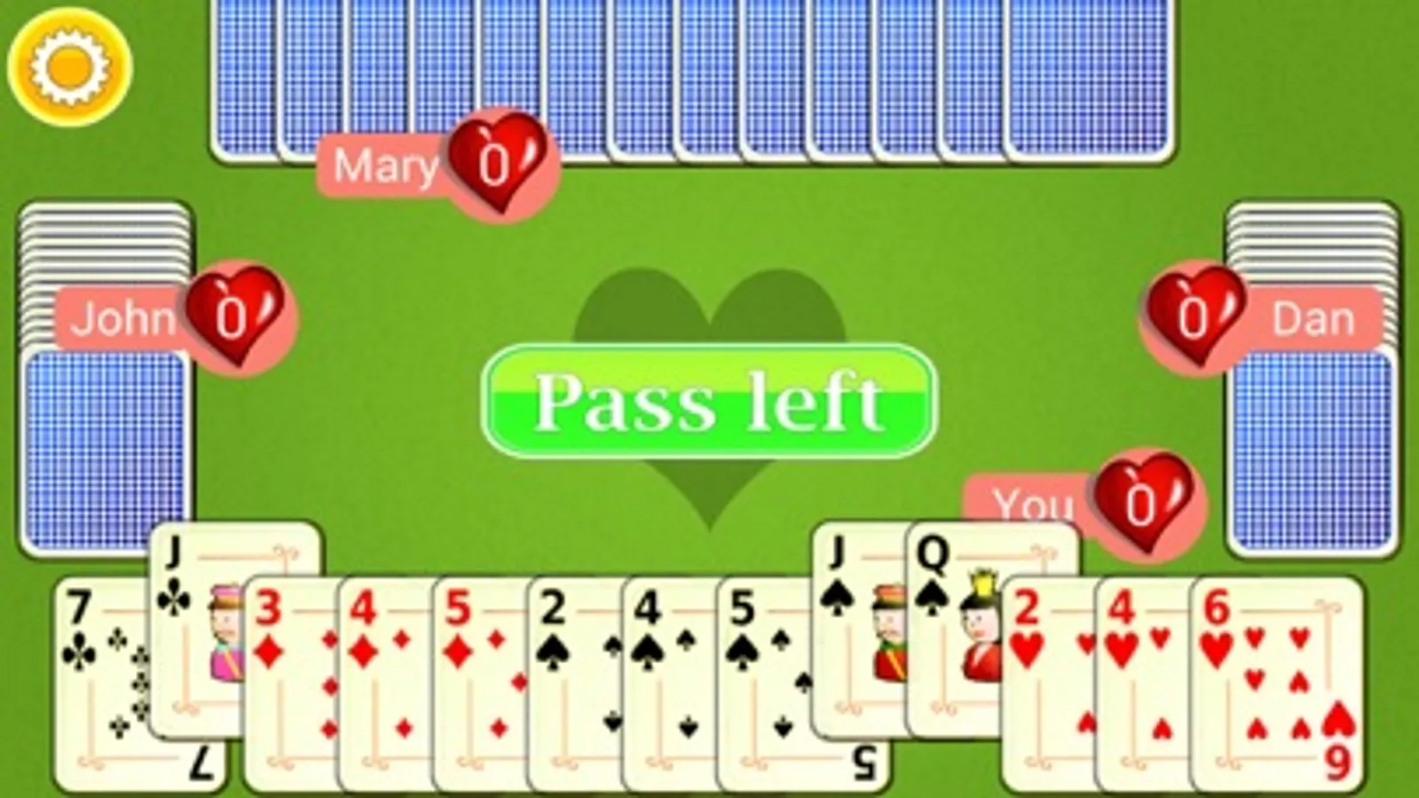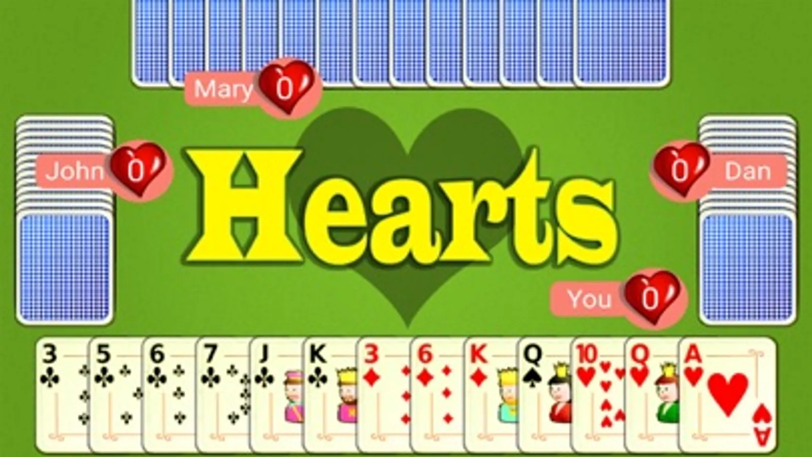Play a captivating game of Hearts. To win you must avoid getting the scoring cards. Or you can Shoot the Moon. The game is over when one of the four players gains more or exactly 100 points. You win if you have the smallest score. Though chance is involved you can still make the best of your cards and win.