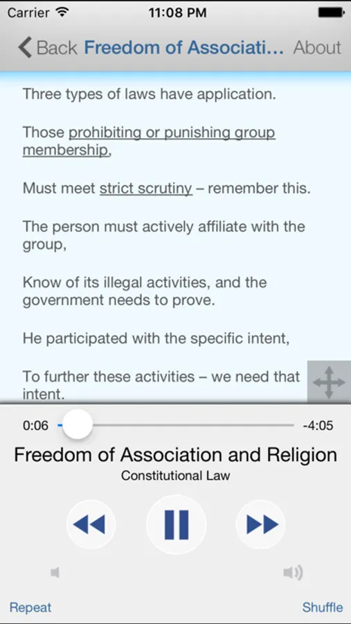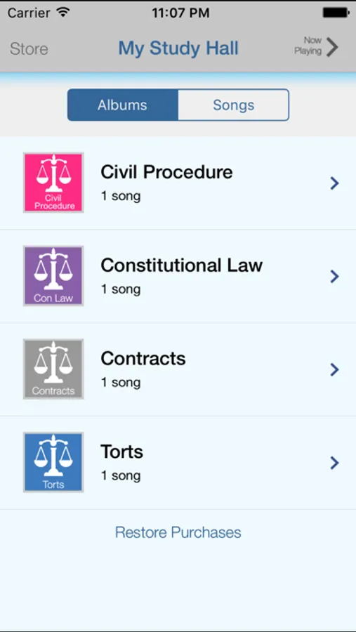 In applying melody, this app covers all of the content that appears on the seven multi-state exam topics, including the newly added Civil Procedure subject. The songs are organized by album according to bar exam subject.
