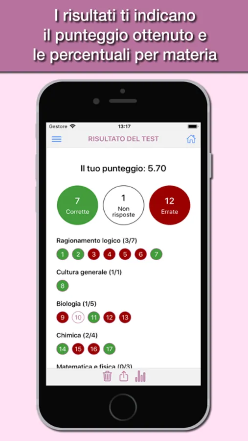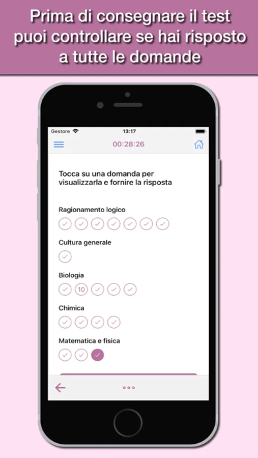 The app is designed to simulate as close as possible the test you actually have to deal with, with all the topics of the test: logical skills, general knowledge, biology, chemistry, mathematics and physics.